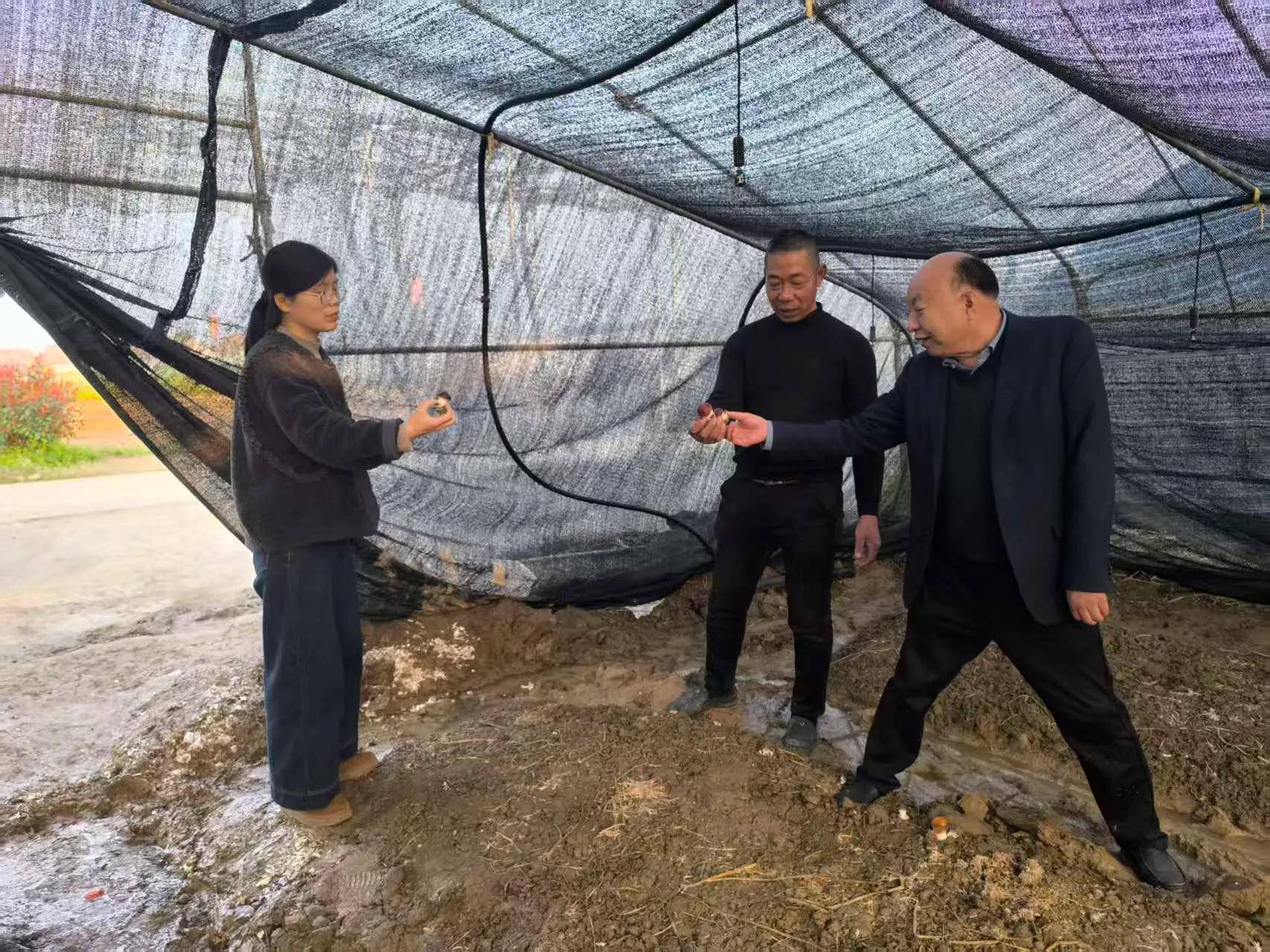 丁伦保在巢湖中垾镇建华村,实际考察准备发展食用菌地方,给予良性建议。