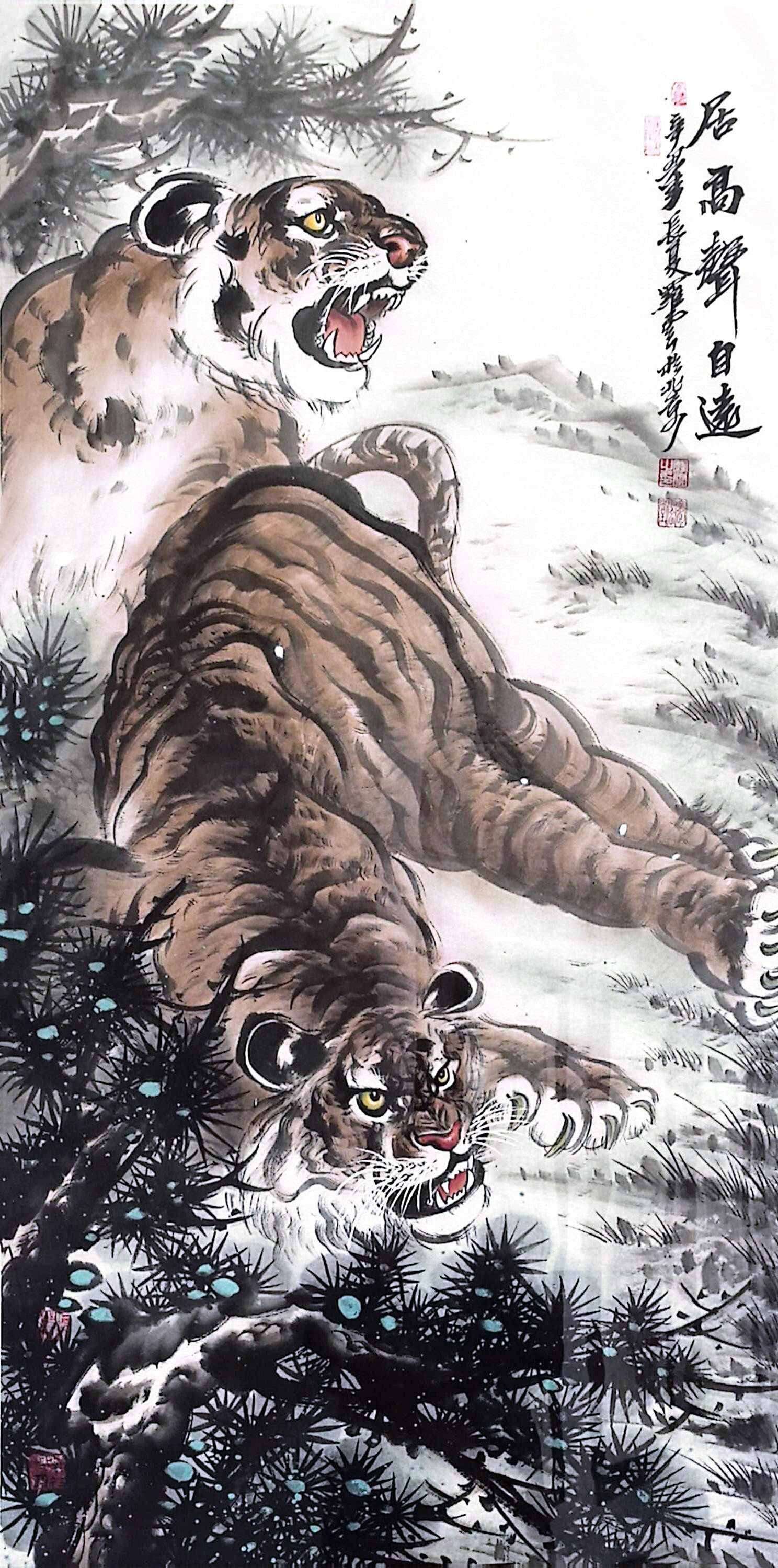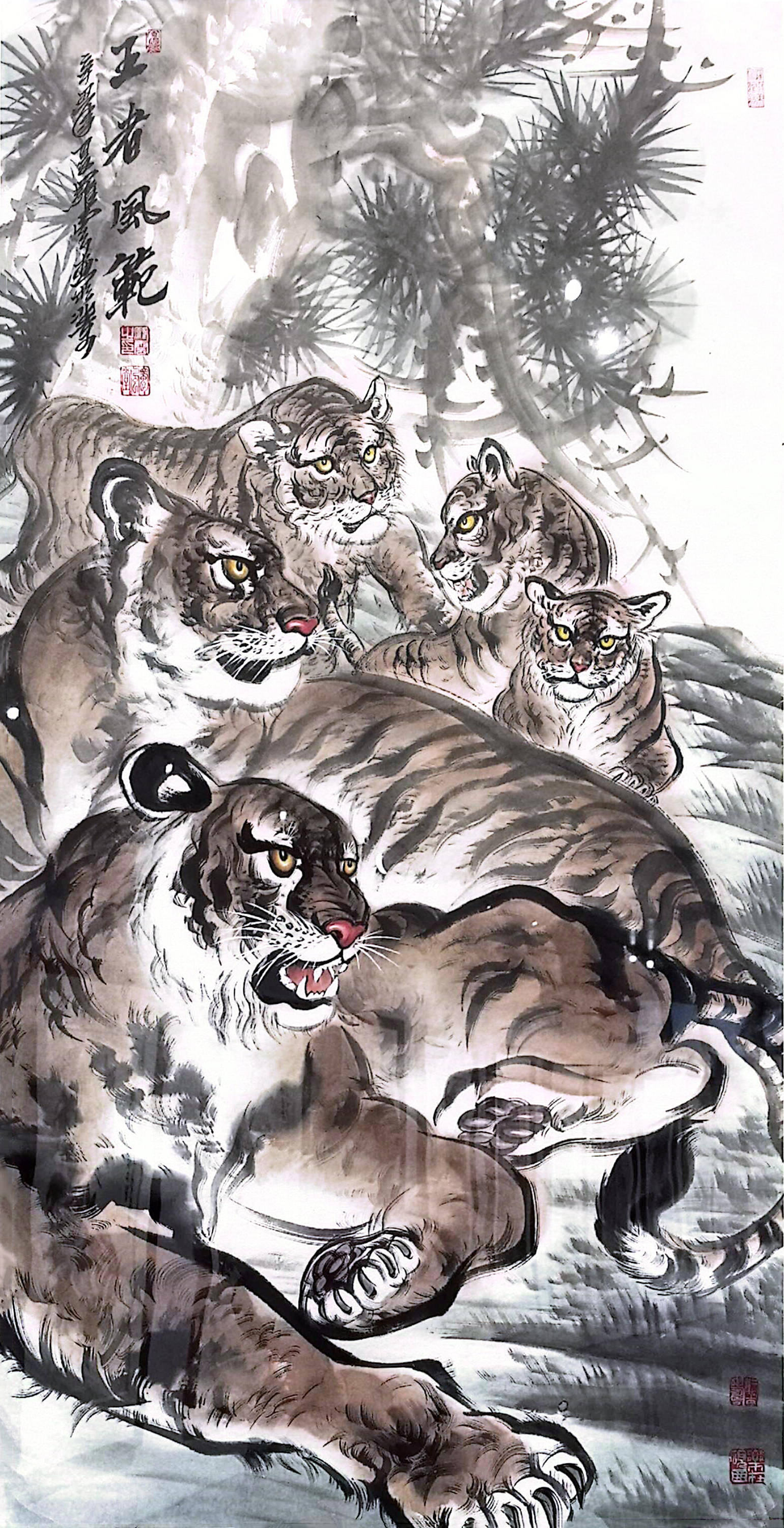 罗云绘画的艺术风格,不管人物、山水,还是花鸟、动物等,以书法用线融碑篆笔意,沉雄大气,可谓“北骨南韵”——既有北方绘画的雄强格局,又得南方笔墨的清雅韵致,更注入当代人的生命感悟与哲学思考,笔墨随时代而升华。