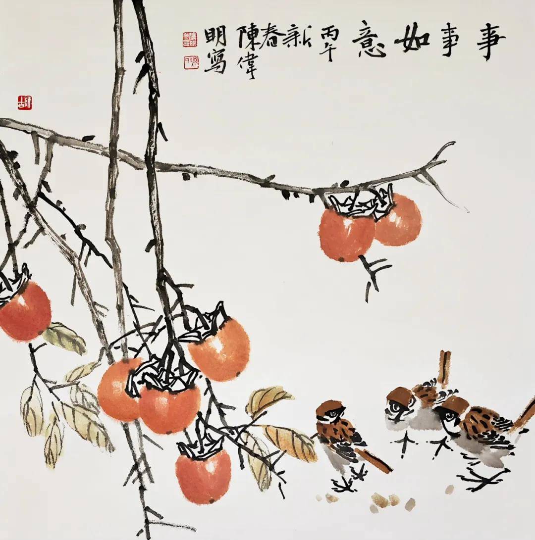 你尽可蘸取冬雪融成的清冽研墨,让笔锋带着寒梅的暗香,在素绢上勾出第一缕柳烟;亦可采撷丹霞揉碎的暖色调色,让皴擦点染间,叠出层峦初醒的黛青。不必拘泥于题材——山水可写“云无心出岫”的闲逸,也可绘“江河奔海”的壮阔;花鸟能描“蜂蝶穿丛”的灵动,亦能画“寒枝立禽”的清绝;人物或现“市井笑语”的温煦,或显“先贤立雪”的风骨。书则篆隶可藏岁月沉潜,行草能纵意气飞扬,哪怕只是一方小小的斋号印,刻着的也是对新岁的郑重期许。