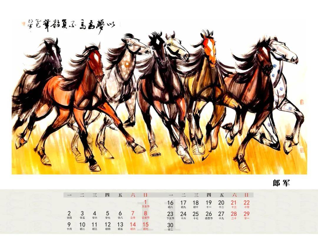 马,在中国文化中向来是力量与灵动的象征,其奔腾之势若疾风骤雨,尽显豪迈之气。正如古人云:“龙马精神海鹤姿”。此台历以马年为契机,汇聚众多书画佳作,将马的飒爽英姿与书画艺术的神韵相结合,意在展现艺术长河中那份永不磨灭的进取与活力。