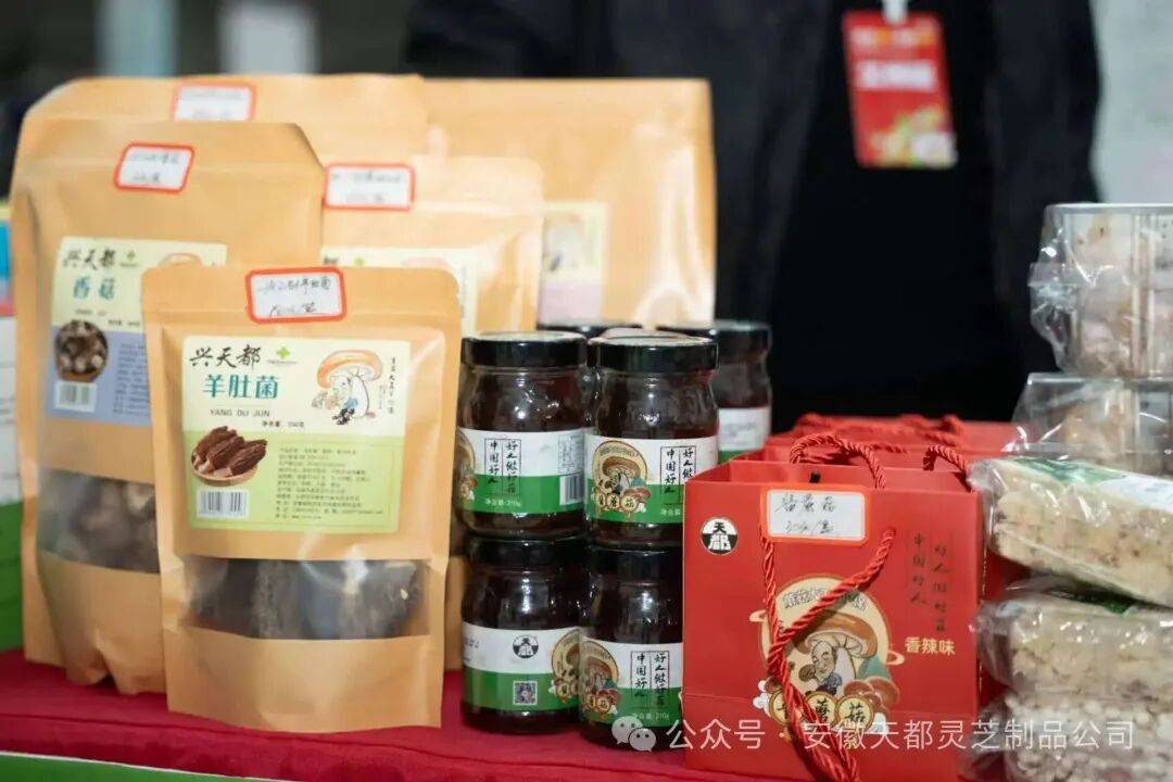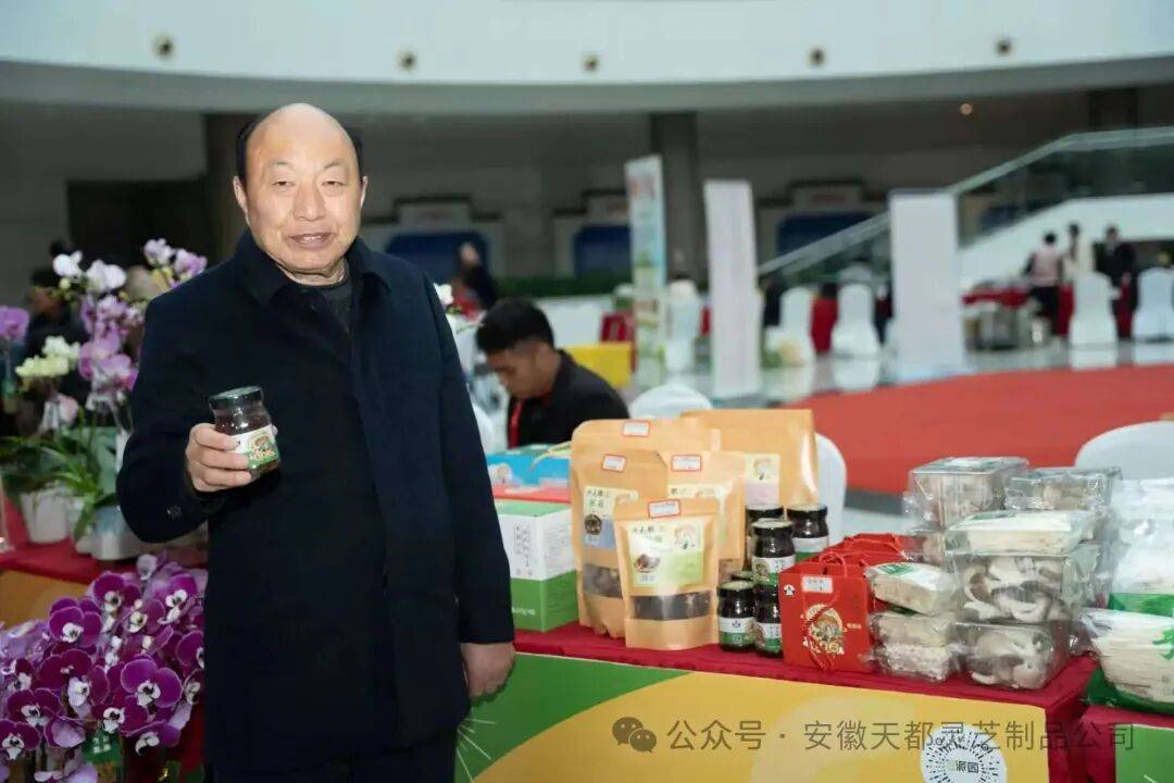 肥西县珍稀食用菌协会会长、科技特派员、蘑菇大王丁伦保带着会员,带着“天都牌”食用菌系列产品、“蘑菇大王丁伦保酱蘑菇”参加展示销售。