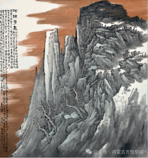 画中的树木,以北方树种为主,独特的地域风貌,造就了艺术家笔下树木的枝、干、叶,有着明显的干燥、斑驳、沉着的北方气质,自然区别于南方树木的翠绿、葱郁、阴柔。生长环境的恶劣,更凸显出北方树木坚韧的品性和顽强的生存能力。扎根荒漠的树木,历经风雕刀刻,蔚然成荫,成了一道道站立的风景。艺术家在画树,更是在捕捉灵魂,在笔墨写意,更是在抒发精神。画幅中体现出树木的遗世独立,不与浊世厮混的独立精神,正是画家自身精神世界与人格追求的投影和自况。