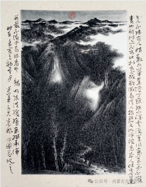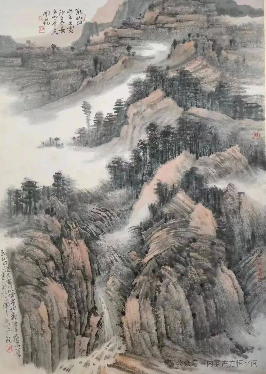 周鼎以细腻的笔触熟练地展现山的巍峨、云的缥缈、水的湍缓和树的密疏,讲述着大千世界万象兴衰的过程和事物发展规律的要义和哲思。每幅山水画都记录着周鼎人文追求一路走来的心相印痕,讲述着自然法则的世相箴言。周鼎以神山圣水铸造信仰的图腾,抒发释放满怀才情。