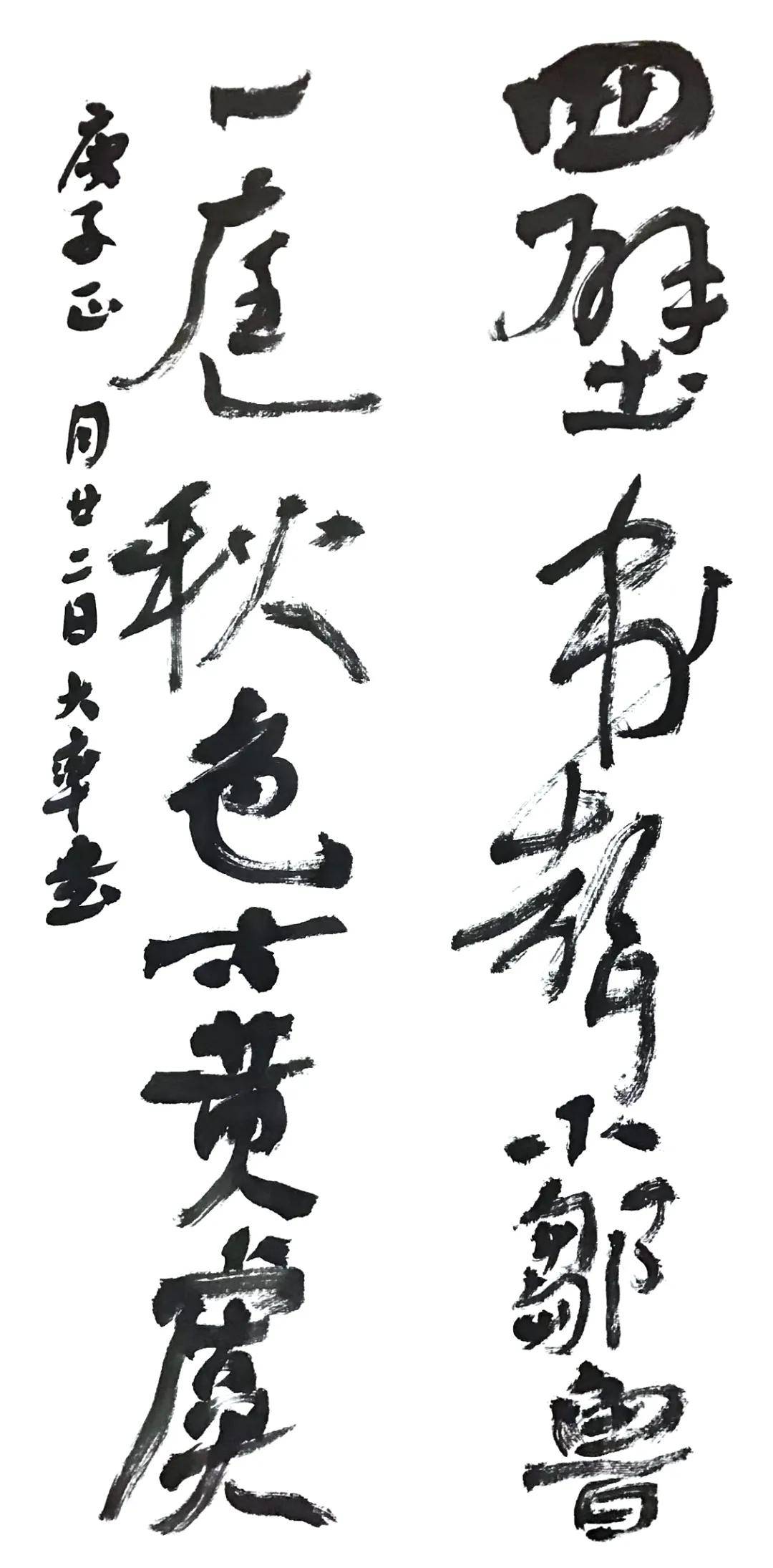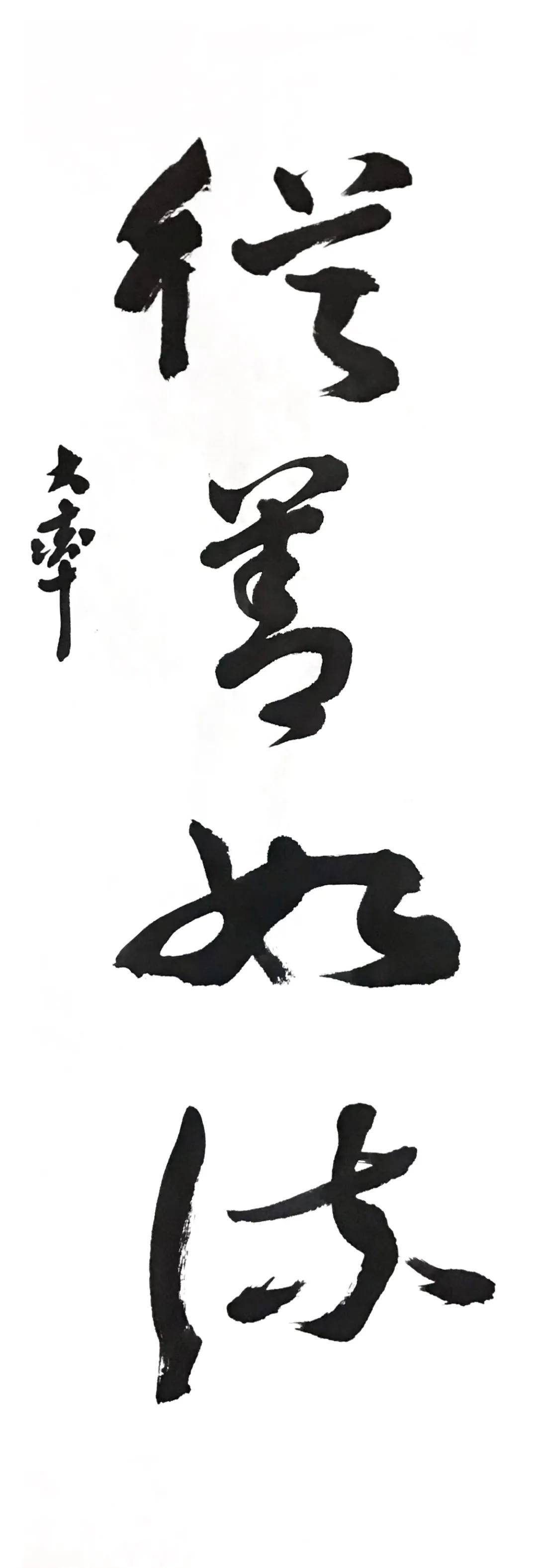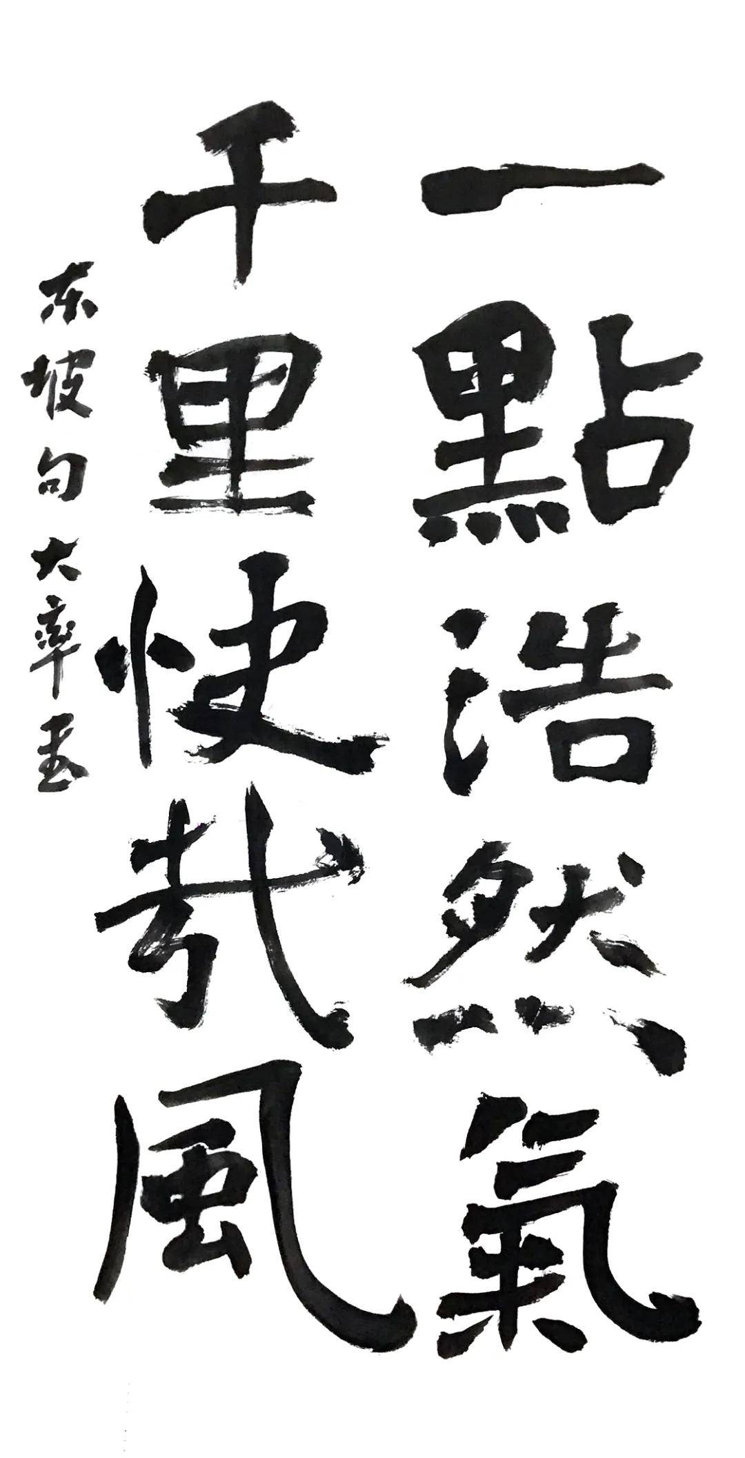 大率真大率,事不拘于谨细、笔不囿于工严,大率行去,但放精神、得意趣、见性情耳!其快意沉著处难测其年岁、莫辩其学养!黄口稚子、时见老笔,其非积于年、成于学,乃得于法、源乎禀也!率幼承庭训,父宽母严,宽则宽而端谨守则、严则严而自然无羁,守则者至极反悟自然法、无羁者无虑却多讲规矩,其相反相成处正是潜移默化浸润濡染之功也!率哉、率哉,其受教端坐而未失乎天性、任情嬉闹而不离于矩度,其调皮好动、自立自主幼异他童,其早获熏陶、得笔得趣迥乎他众。前人所谓不学而能、无师自通者于兹或得正解,不学者非不学也,是学而不知也;无师者非无师也,是师而不觉也!且日日浸淫于斯、刻刻陶育其间,坐卧行走、渴饮饥食,动止啼呼、喜笑怒骂,时时处处俱得其滋养而未尝一刻稍有违离也!不知其窍者视之恰似得之自然而秉乎天性,其实染于家室、积以时日也!率之习书作画咏诗治印不蹈常途,不袭于形、不循于矩,非于皮相处着力,乃舍貌而取神、忘形而求法,直抵本根者也。回视来路,其髫年执笔初以天性发之,稚子拙笔似无所师,实天真烂漫堪为长者师也;渐能发蒙,不免外感于同学师长,恐染于时,十龄后乃给以碑版造像,使味其笔、依其势,其虽未必解,拟亦不必肖,但使潜滋默养得其气息而感其格调也!长则继以晋唐法帖,习法矩、体精严,不求十分肖似,但能味其神韵气格则足矣!所谓借取他山之石以攻玉,权藉先哲妙墨以宣心也。其幼年习书既筑用笔挥运之基,且复陶染于经籍诗赋、水墨丹青,冶其才藻、骋其情性,童稚所习人谓如漆,岂为雕章琢句、安期工巧妍丽,乃在怡情冶性、适性骋怀,人与俱化浃入神髓,夺之不能去也。其既得尽适其天性而未加摧折,乃反要归乎绳墨、依于矩度,以天性入规矩,以规矩注天性,相反相成,既免害于矩范而失趣、又免染乎时习而入俗,天人相冶乃始稍有得也。率偶有所作,无不发乎禀赋、纯任天性,依于法而不囿于法、有所本而不困于本,即稍假于他人粉本亦必脱略乎形迹,笔姿所发,直见自家庭庑矣!其何为若此哉,乃在其虽不必朝朝耽读临池、日日图写切刻,而心神所萦、生活所系者未尝须臾离于画印诗书、明圣贤哲艺文国粹之陶育也。其得之自然、出之松活者概未加外力营求,不惑于外欲、未入乎外道故也!心迹外化之妙,无非见情见性,观之者或粲然或莞尔,其快意情洽处,一笑会心可也!自有乾坤从大率,岂拘形迹任天倪!
