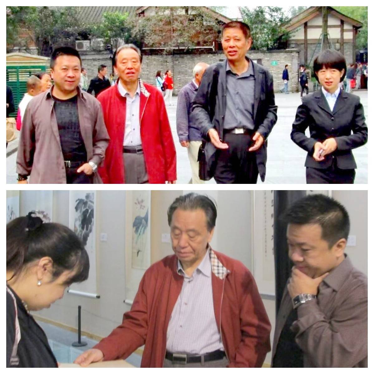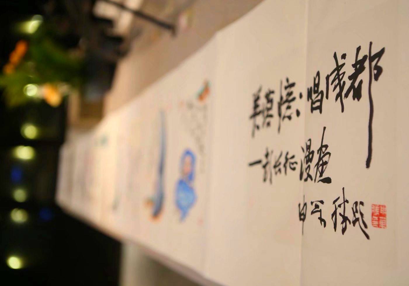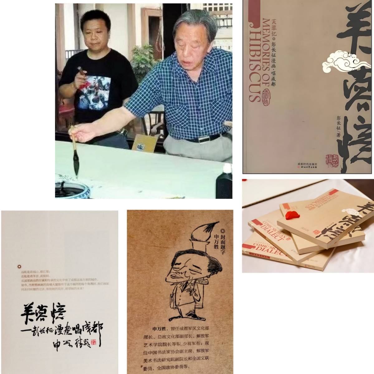 2012年,我在结束了在广西、辽宁、广东、浙江和香港等地的工作和生活历程后,回到故乡。定居四川成都后,万胜将军由原成都军区宣传部韩大风部长陪同,曾专程亲临宽窄巷子雄起艺术,指导我的创作,并为创意人物水墨画《带枪钟馗》系列题字,为《芙蓉忆》系列题写书名,此书后获首届优秀川版图书奖,并为广大网友评为“读懂成都的十本书”之一。我为他画了一幅漫画速写收藏,他还参加了雄风堂组织的多场主题笔会和雅集活动。