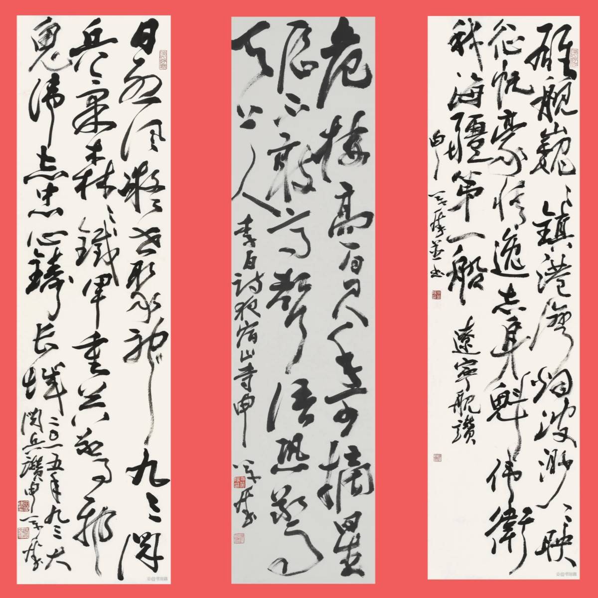 在审美上,他执意追求“重、拙、大”的浑厚之美。用笔则讲求“度”的把握,线条在疾涩、浓淡、疏密间变化丰富,形成激昂的交响节奏,人书俱老,渐成返璞归真的自由境界。