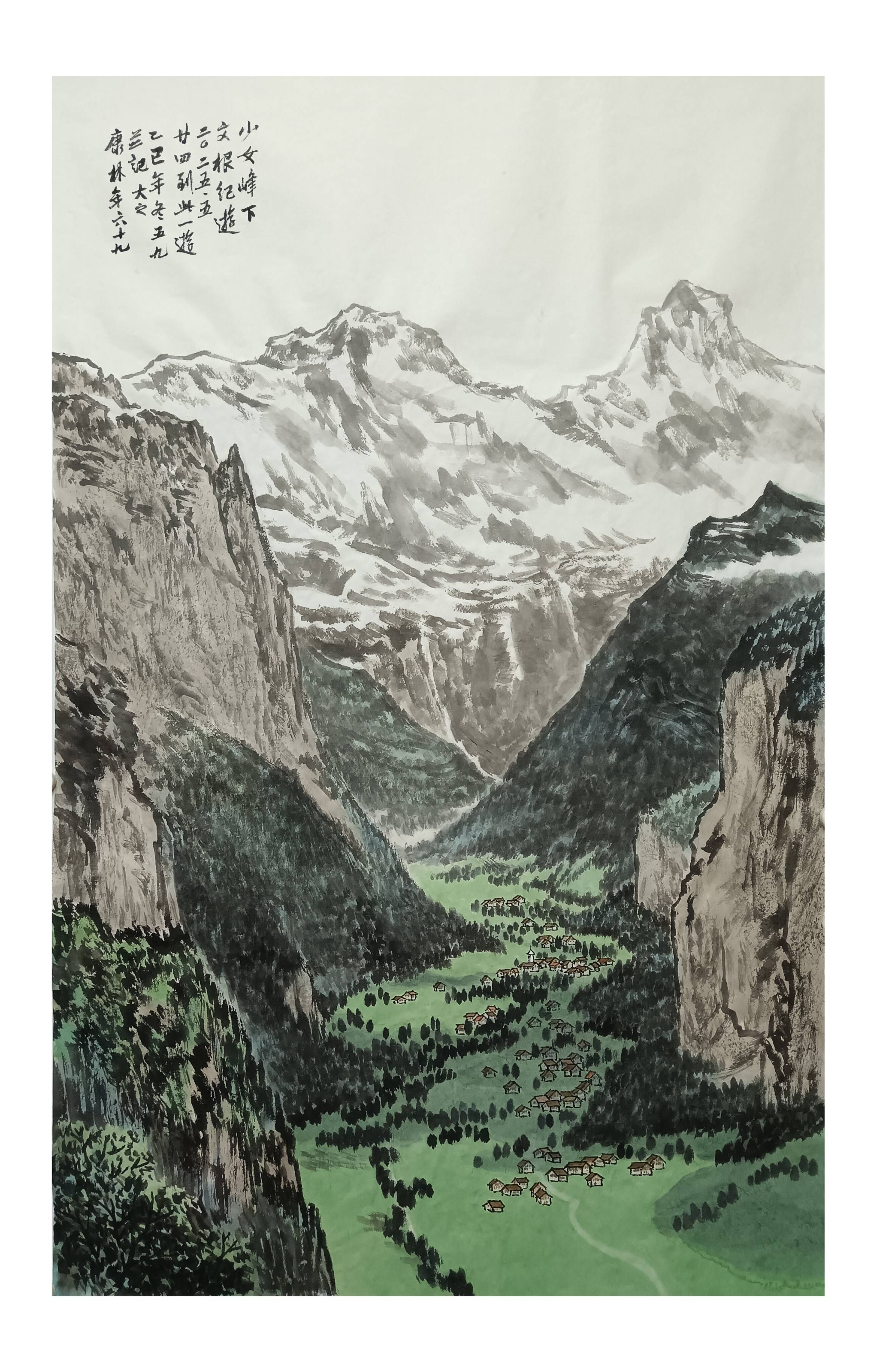 徐康林是当代巴蜀地区具有代表性的山水画家,其《欧洲纪游》系列以瑞士阿尔卑斯山实景为对象,以中国传统水墨为载体,实现了异域山水的本土化转译与跨文化表达。作品以写实写生为基础,以东方写意精神为内核,在笔墨技法、空间构图与文化意境上形成鲜明个人面貌,为当代中国山水画的国际化探索提供了实践样本。本文以《劳特布嫩》为核心个案,探析其创作特征、文化内涵与时代价值。