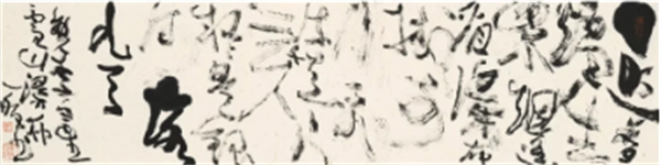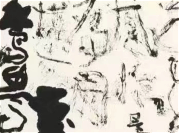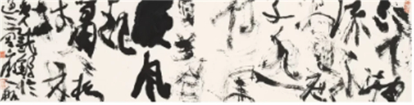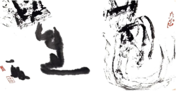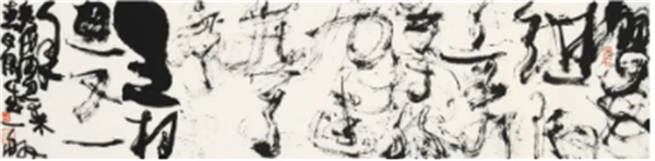 Your works completely break the traditionalboundaries between calligraphy andpainting, creating an entirely new visuallanguage. In these pieces intertwined withwild cursive and ink imagery, we see nomere writing of Chinese characters, but avivid and unrestrained expression of lifeitself.