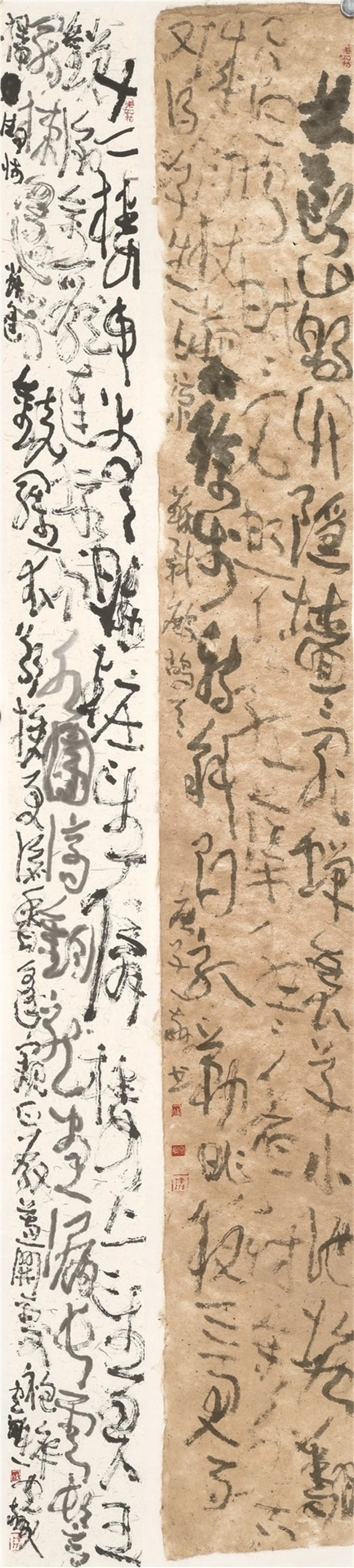 Your works clearly inherit the spirit ofmasters of wild cursive such as Zhang Xuand Huai Su. The frenzy and passion of"suddenly crying out three or five times,writing ten thousand words across thewall" are fully recreated in your brush. Yetyou do not stop here: you push the lyricismof wild cursive to its extreme, evendissolving the readability of characters,making emotional release the soleprotagonist.