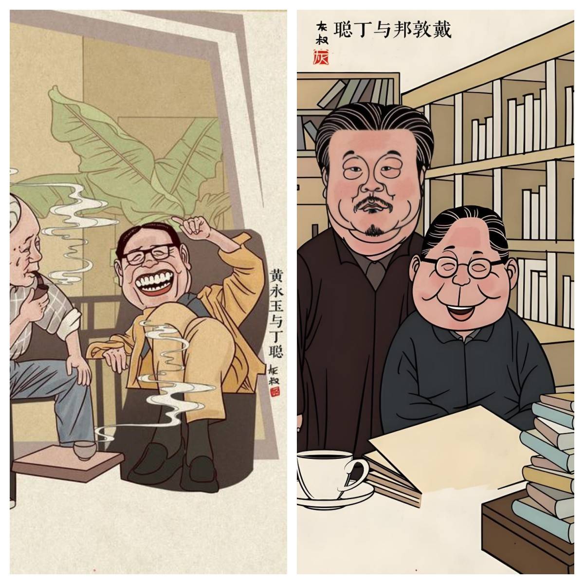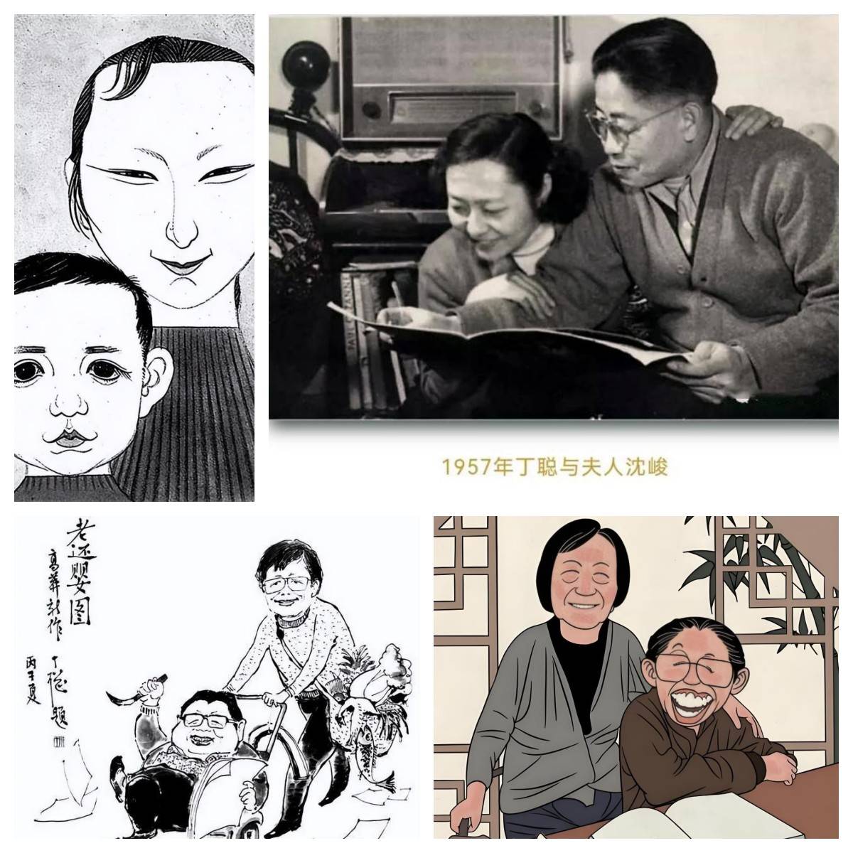 中国现代文学馆前馆长舒乙曾经问他给哪位作家的作品画插图最多,丁聪毫不犹豫地说:“给你爸爸(老舍)。”然后他像说相声的绕口令似的说,自己是“老给老舍画画的老画家”。
