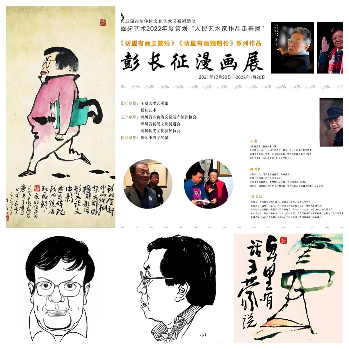 魏明伦也曾在我的漫画展致辞中鼓励说:彭长征创作的《川丑记》《带枪钟馗》《画里有话王蒙说》《画里有话魏明伦》等系列作品弘扬了丁聪漫画中以小见大、世态讥弹和激浊扬清的批判精神。我也能与丁聪漫画王蒙、魏明伦像共同收藏,陈列于王蒙文学艺术馆和魏明伦戏剧馆为荣。