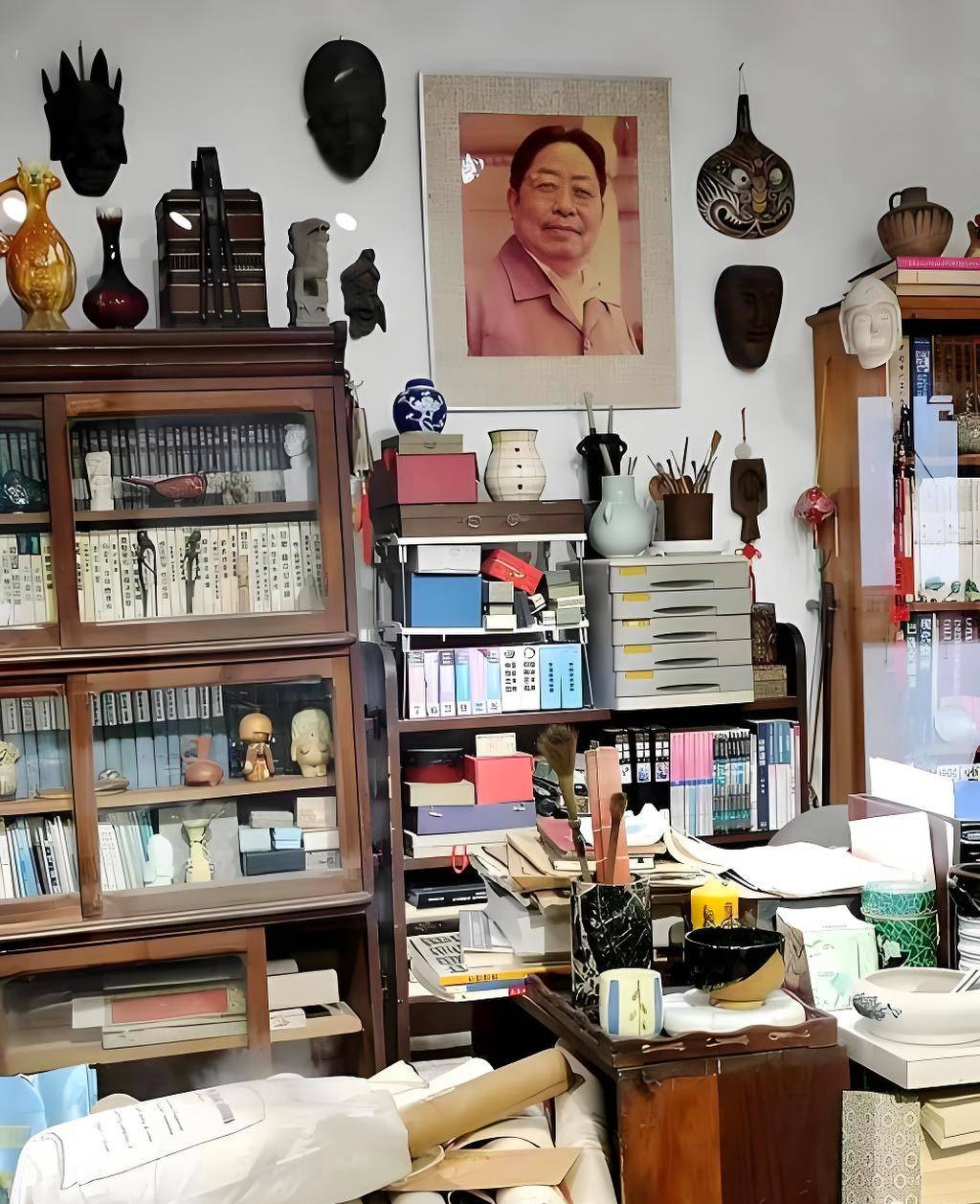 这个笔名取得好。不光是因为笔画少,更因为它有一种谦和、不张扬的气质。传记作家李辉在一篇文章中说,老先生坐在他那间名叫“山海居”的书房里,埋头画画的样子。那书房只有十二平方米,书桌是用画板搭在书箱上的,画板下堆满了书,画板上也堆满了书,只留出中间一小块地方画画。他找东西像海里捞针一样难,可就在这样逼仄的空间里,他画出了那么多作品。