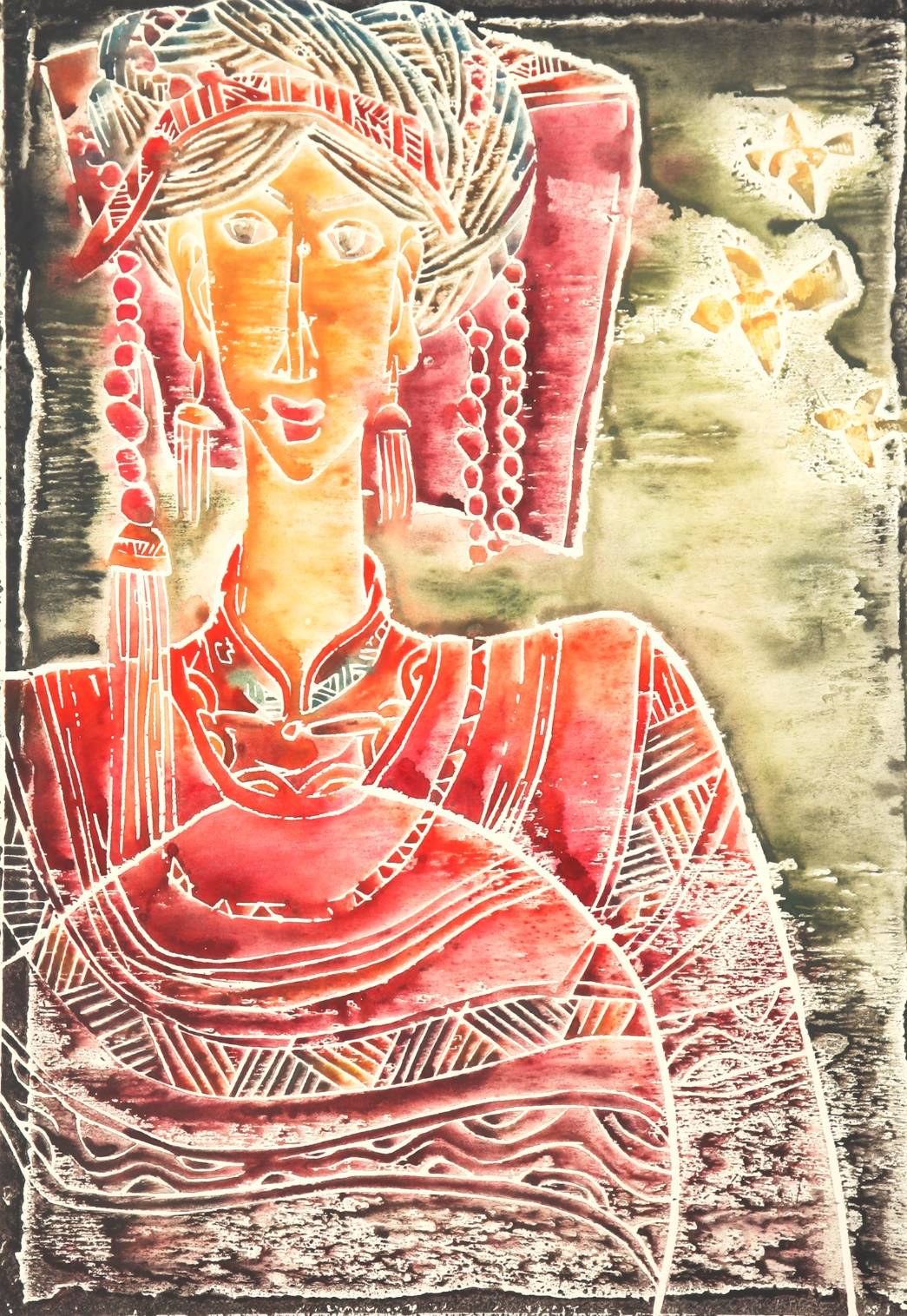 《吉祥藏女》是陈斌以规则酿造浪漫的典范,艺术欣赏的起点,便是平面舞台上流淌的吉祥意韵。