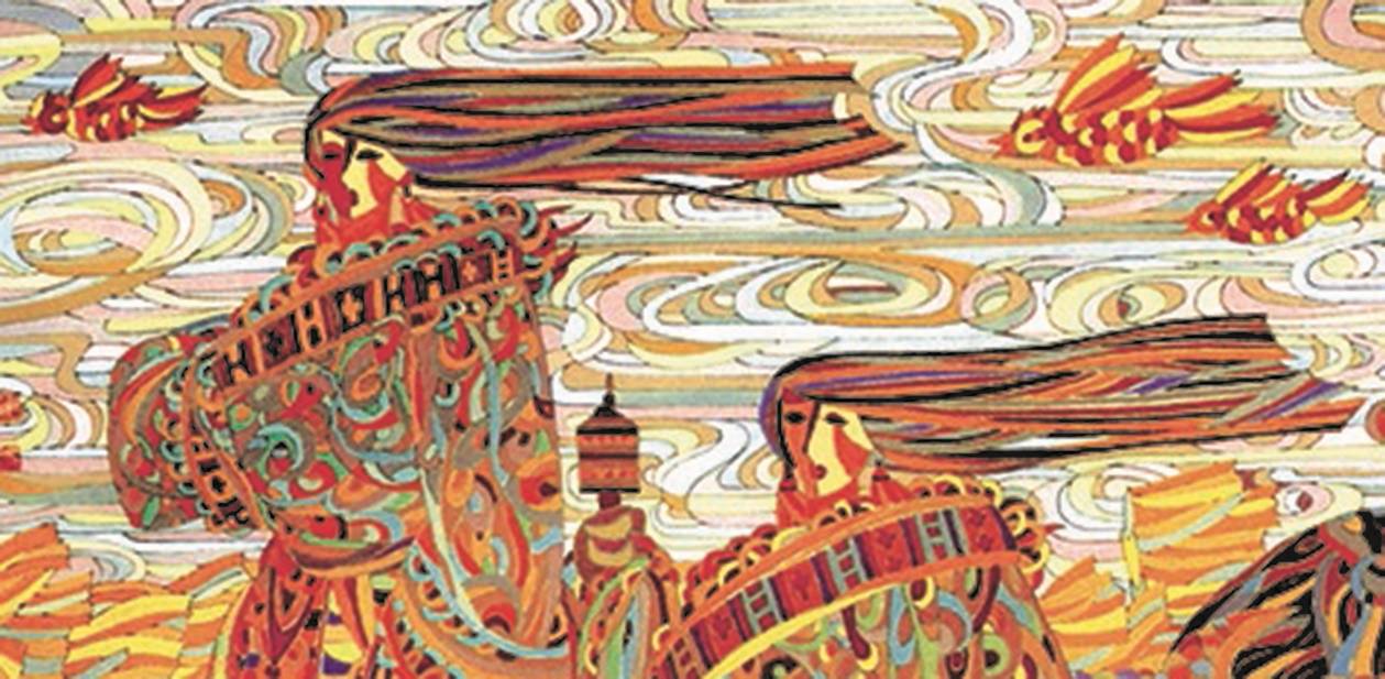这一模型在东西方艺术中皆能找到印证:康定斯基由理入魂,以几何、音乐的理性结构,为“精神吉祥”寻找普世的视觉表达,诠释了“内在必须性”的吉祥驱动;陈斌则由魂生理,从藏地祈福颂风、龙飞凤舞的诗意母体出发,让吉祥记忆自然凝结为现代形式秩序,彰显了“气韵生动”的共生本质。二人路径相悖,却殊途同归,共同抵达了吉祥与艺术共生的终极境界。