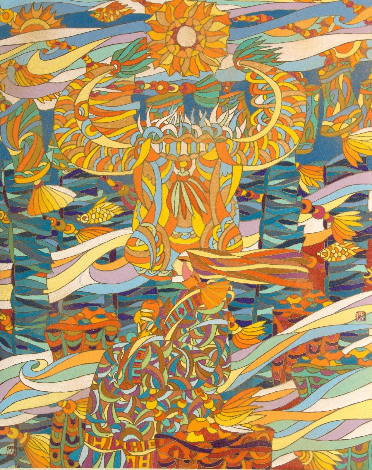 诗义为魂,是对吉祥境界的本真心向往——是对和谐圆满的期许,对生机勃发的祈愿,是苦难中升腾的希望,是灵魂深处对安宁的渴求。这份对吉祥的执念,构成了创作最原始的内驱力,为作品注入独特的气息、温度与前行方向。