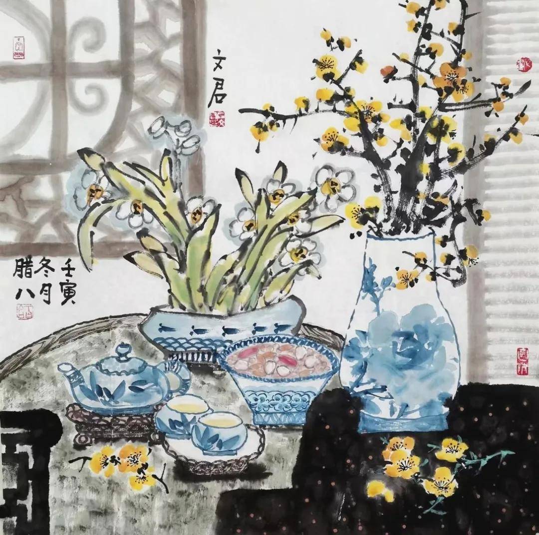 你尽可蘸取冬雪融成的清冽研墨,让笔锋带着寒梅的暗香,在素绢上勾出第一缕柳烟;亦可采撷丹霞揉碎的暖色调色,让皴擦点染间,叠出层峦初醒的黛青。不必拘泥于题材——山水可写“云无心出岫”的闲逸,也可绘“江河奔海”的壮阔;花鸟能描“蜂蝶穿丛”的灵动,亦能画“寒枝立禽”的清绝;人物或现“市井笑语”的温煦,或显“先贤立雪”的风骨。书则篆隶可藏岁月沉潜,行草能纵意气飞扬,哪怕只是一方小小的斋号印,刻着的也是对新岁的郑重期许。