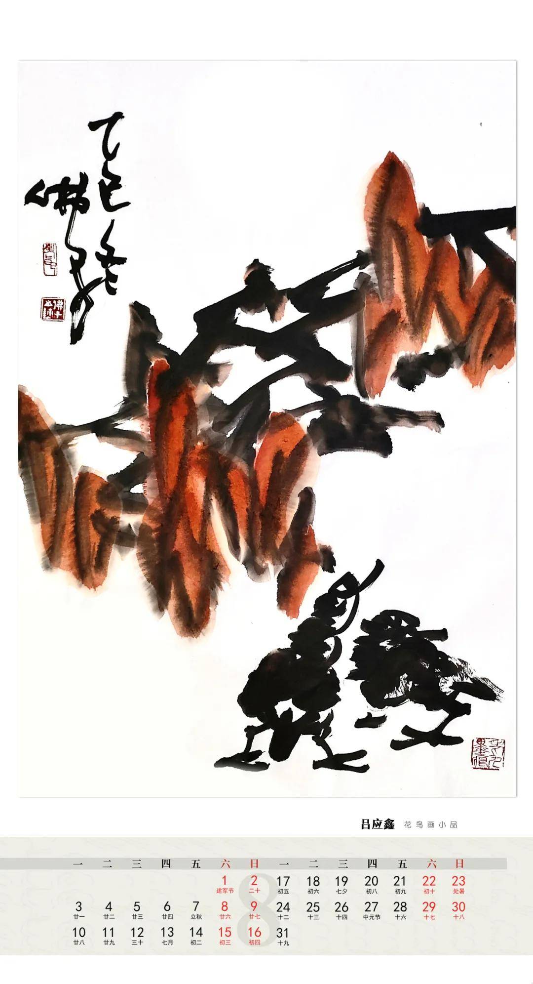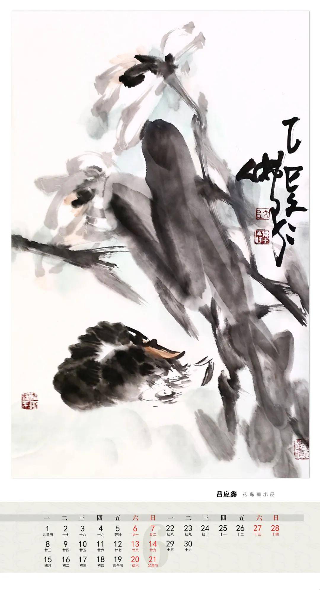 观此台历中的画作,用笔灵动而富有张力。勾勒禽鸟翎羽时,线条细腻入微,似能听见莺啼燕语;皴擦花木枝干,笔墨苍劲老辣,尽显松柏之挺拔、梅竹之傲岸。用墨更是匠心独运,水墨晕染间,浓淡干湿焦五色相生,或泼墨写意,展现荷塘烟雨之朦胧;或淡墨轻描,勾勒幽兰吐蕊之清雅。设色上,摒弃浓艳俗媚,以淡彩写意之法,让赭石、花青、胭脂等色彩相互交融,于素净雅致中见蓬勃生机。