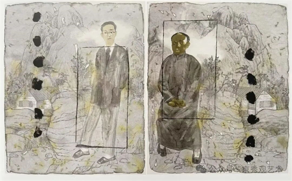 “百年肖像”与“大肖像”两大系列,正是这一理念的集中体现。从李鸿章、梁启超、鲁迅、胡适,到潘天寿、丰子恺、傅雷、林风眠、再到陈寅恪、顾准、叶企孙、梁思成等先贤,他以特写式笔墨深入人物内心,在沉静中梳理时代脉络,探寻民族精神的来路与力量。《在朱耷山水上耕种》系列,以朴素语言思考传统与当代的关系,将个人体悟融入艺术史语境之中。《和平鸽》等作品,则直抒胸臆,表达对人性、生命与精神归宿的思考,使创作既有现实关怀,亦不乏历史深度与文明视野。