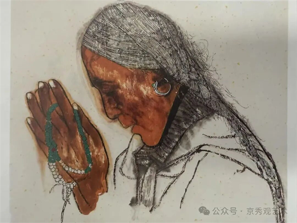 数次深入高原,更让他的艺术视野得以拓展。《大昭寺的清晨》《迎阿訇》《凉山布托人》《朝拜者天空》等系列,以浓墨、留白营造出信仰的庄严与沉静,坚持“整体写意,局部写实”,把高原的沧桑与虔诚表现得沉挚而有力。黑土的沉厚与高原的清寂彼此映照,使他对人性的体察更为深广。