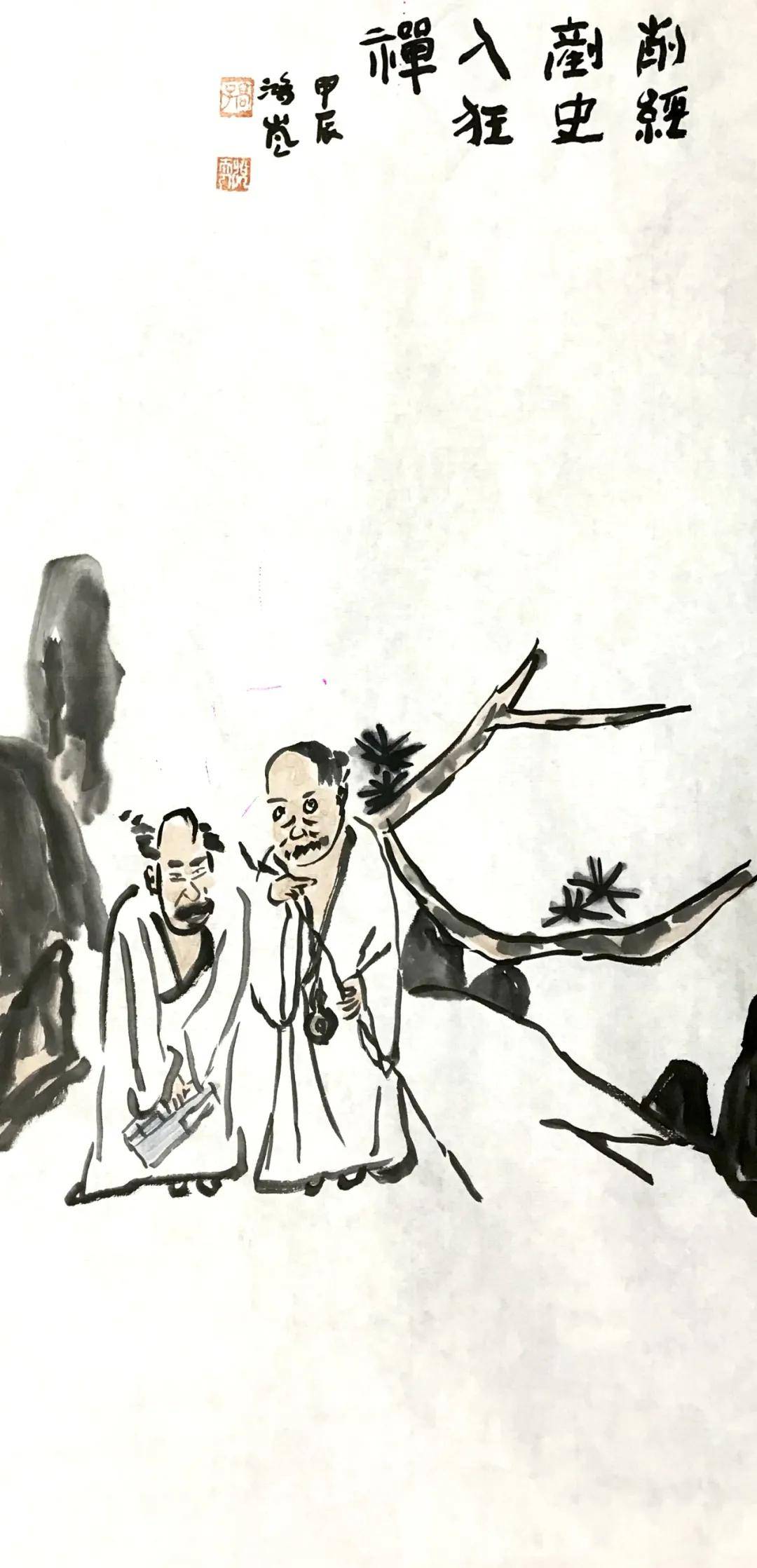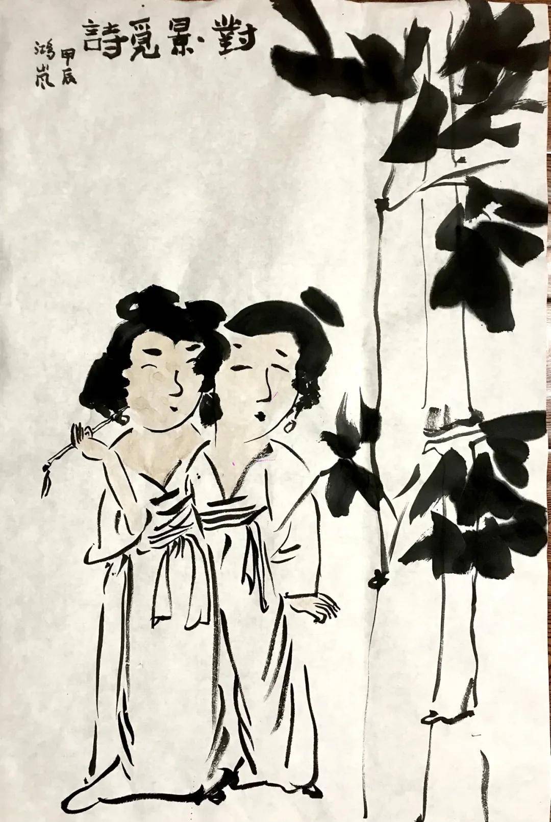 其实,鸿岚从小喜欢涂鸦,画的全是心性中的喜好与憧憬。幼稚期的鸳鸟蜓虫的写照画的是童稚心中的乐趣;学生时代莺莺与红娘的秀像画的是女孩心中的梦想;婚后的书法修习是初为人妻的一种潜在修养追求;后来有了孩子,与孩子一起涂鸦,常常在哈哈一乐中,把那些正经八百的高士画成了儿子眼中的光头强与灰太狼。