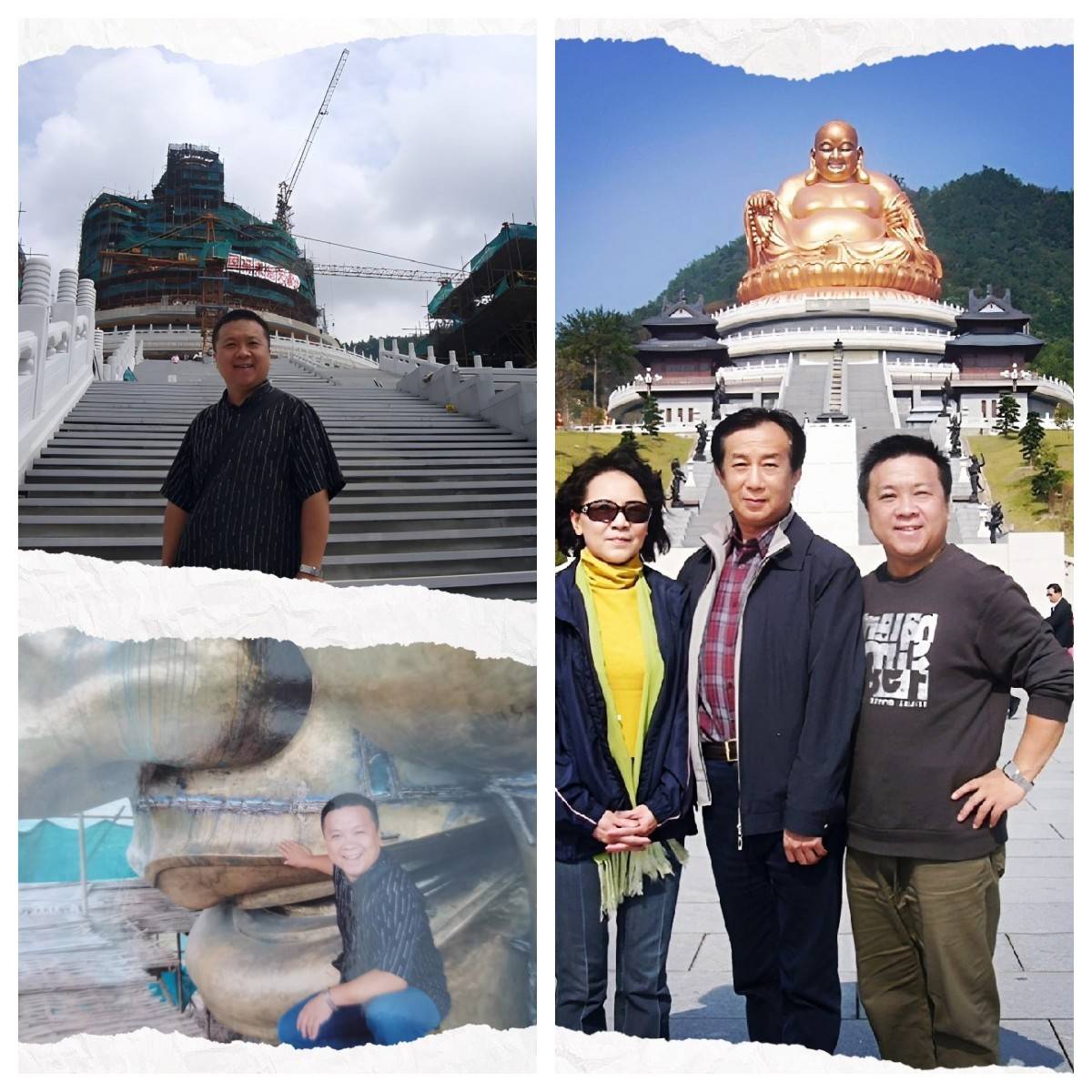 记得当年,大佛落成前夕,受时任奉化文旅局王局长的邀请,我与父母及同事曾登顶佛头,在施工现场钢架构未撤出时,有幸从脚到头“笑笑生,摸摸佛”,感受了我国民间如乐山大佛的“摸耳求安”及弥勒佛“摸肚皮”觉悟当下的意趣。自身的渺小却能站在巨佛的肩上,远眺四周,雪窦山美景尽收眼底,仿佛听得见山谷深处古老深沉的悠悠钟声,领略到云海禅境佛韵绵长的空灵深远。“形模弥勒一布袋,文字江河万古流。”庄严与神秘涌动心头,看群山环抱,绿树成荫,远离红尘的宁静感油然而生。