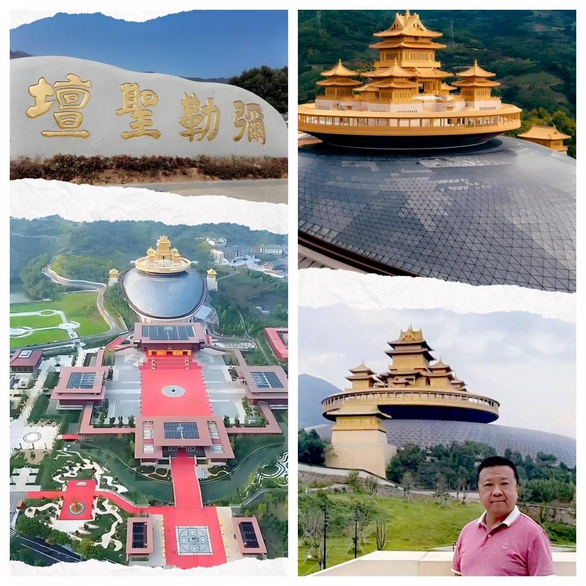 临别,敬业的杨馆长邀请我有机会再来,举办一次《扫地笑佛》的主题画展。我想,下次再来不仅攀雪窦山,仰弥勒大佛,画弥勒博物馆,还要因时间仓促未去的弥勒圣坛参访。远观圣坛,整体规模宏大,气势磅礴,金碧辉煌,有极具现代设计感的“横空出世”之势。作为展现佛教艺术与文化的重要地标,去年,主题为“同愿同行-和合共生”的第六届世界佛教论坛在这里举行,全球72个国家和地区的代表共襄盛举,发布了《雪窦山宣言》,为构建人类命运共同体贡献佛教的智慧力量。