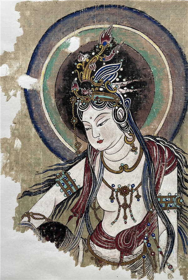 本次展览特别设置了 “研修成果专区”,集中展示星光夜校敦煌艺术研修班学生的临摹作品。这些作品虽出自“素人”与儿童之手,却能较好把握了敦煌壁画的特殊风貌和艺术风格,让人耳目一新。