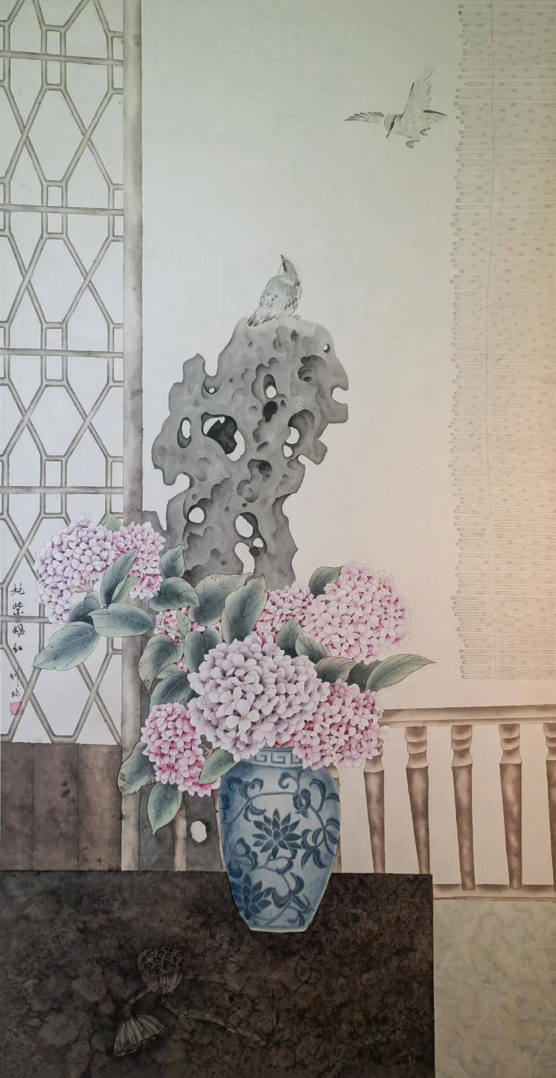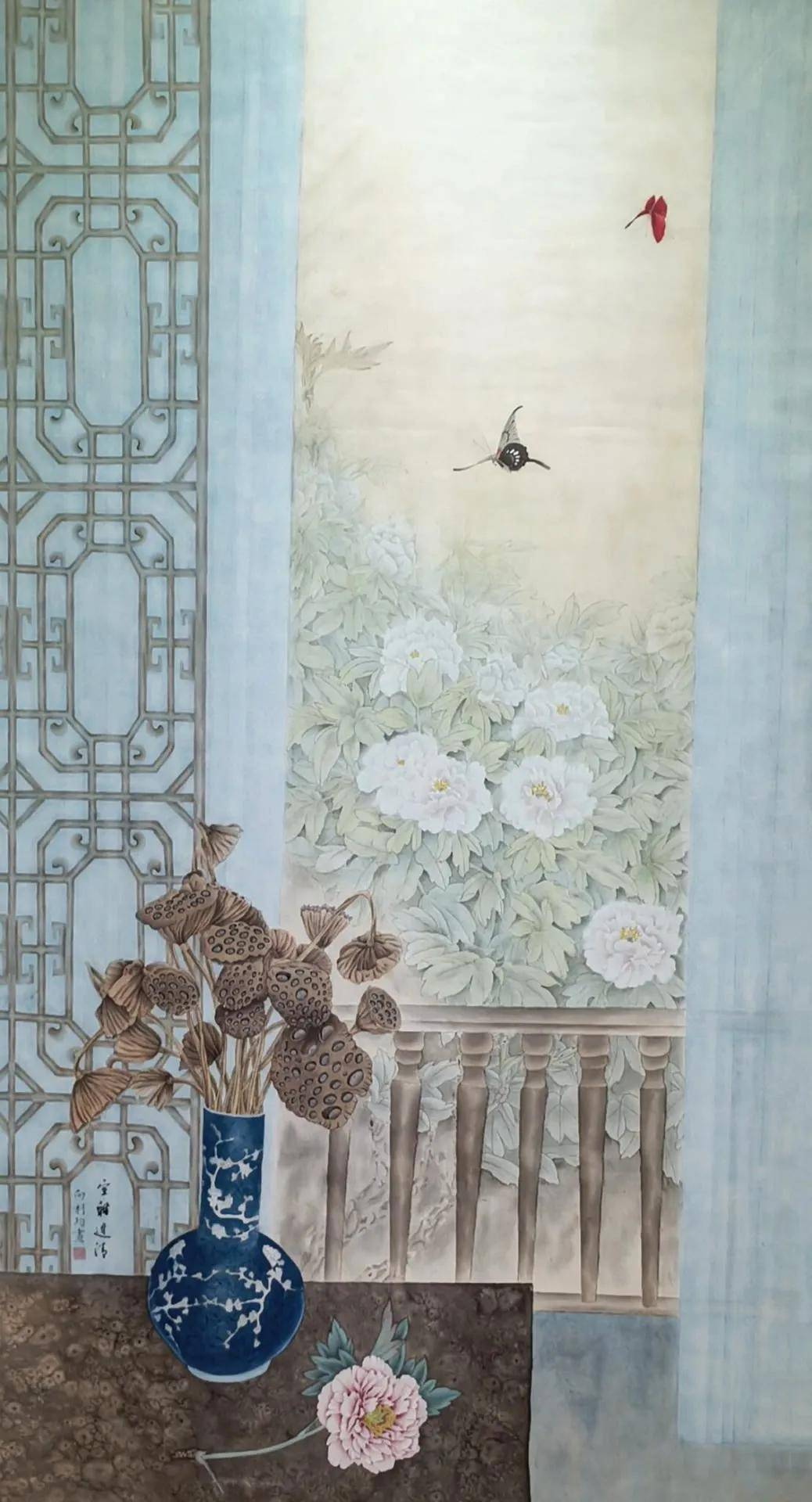 2018年作品《海榴殷色透窗栊》在锦江文化馆展览