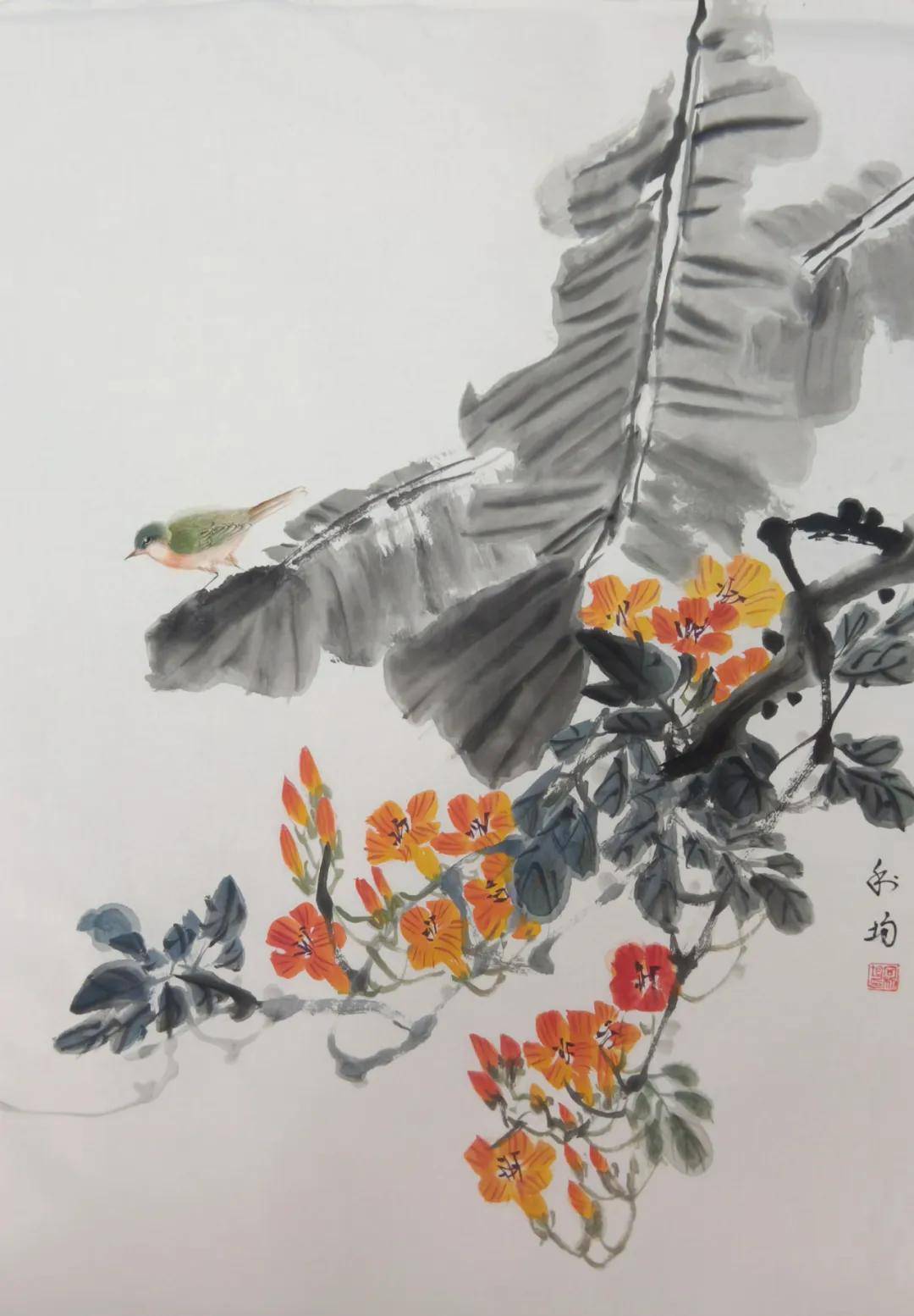 2018年作品《晓看红湿处花重锦官城》入选“通威杯首届笔墨精神中国画网络大赛,并获铜奖