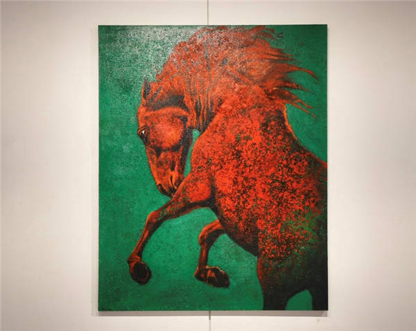 马,是呈昕近几年创作的核心主题,从记忆和想象中取材,受印象表现和冒险主义的影响,运用梦幻般的红绿色调,营造出强烈对比的感性氛围。