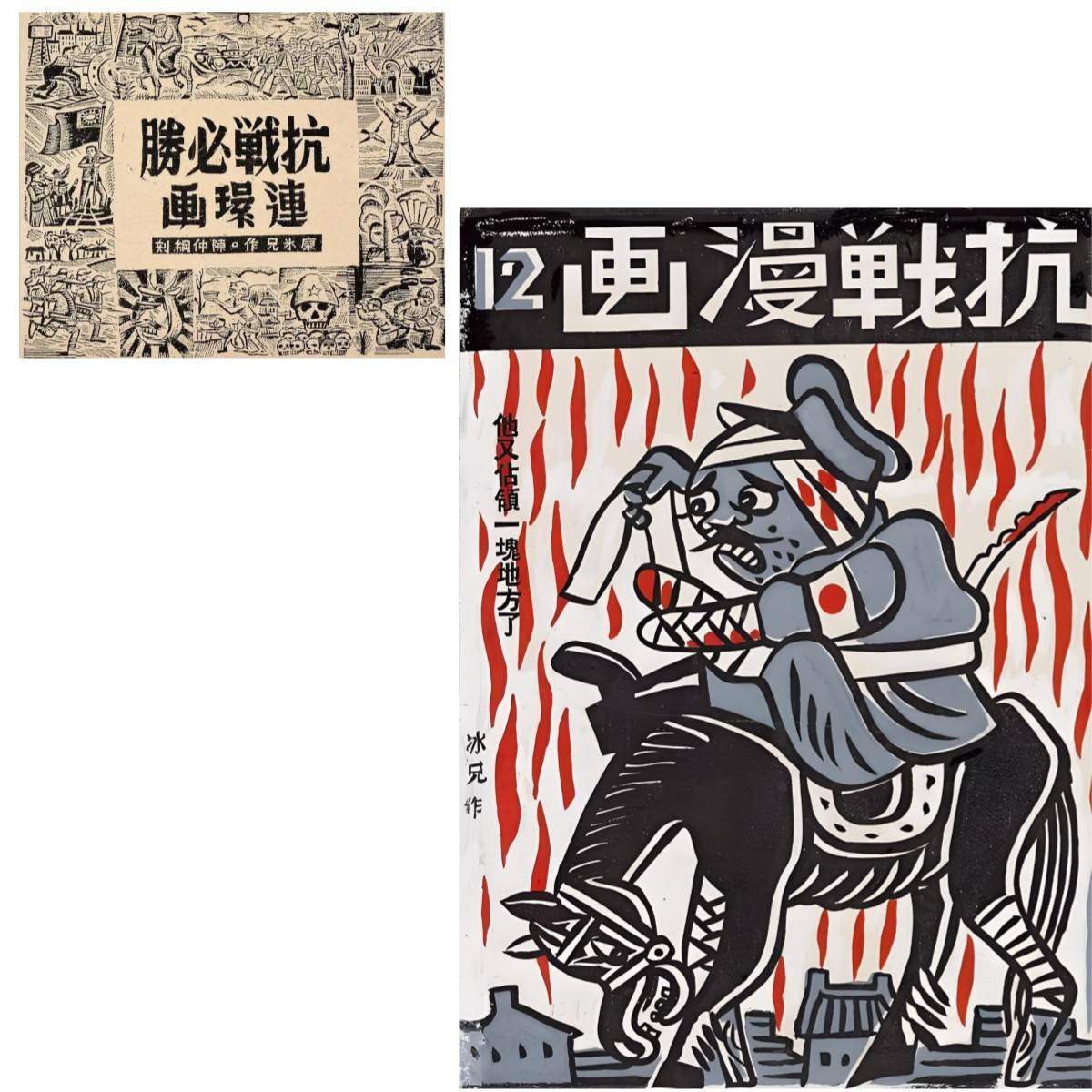抗战爆发那年,他辞掉工作,用四十天画了二百幅抗战宣传画,在广州办展览。后来又加入漫画宣传队,到前线去。他为毛泽东的《论持久战》画连环画,印了两万册发给前线士兵,影响广泛。那时候的廖冰兄,是一个热血青年,以画笔为武器,为这个国家拼命。