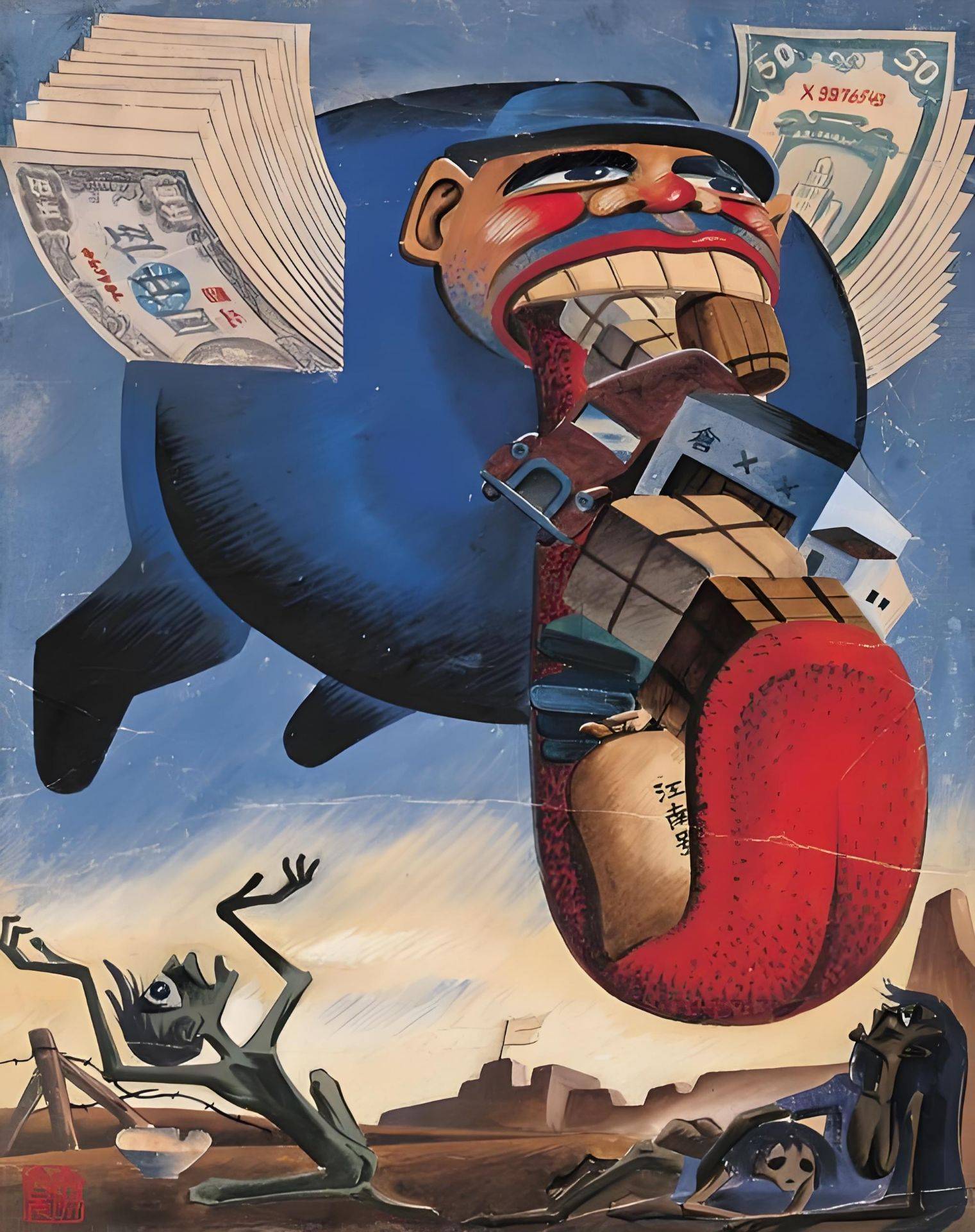 所以他不幽默。他的画是悲愤的,是笑里带泪的。那种笑,是苦笑,是冷笑,是嘲笑,是含着泪的笑。他把这种悲愤画出来,不是为了发泄,而是为了让更多人看到后警示未来。