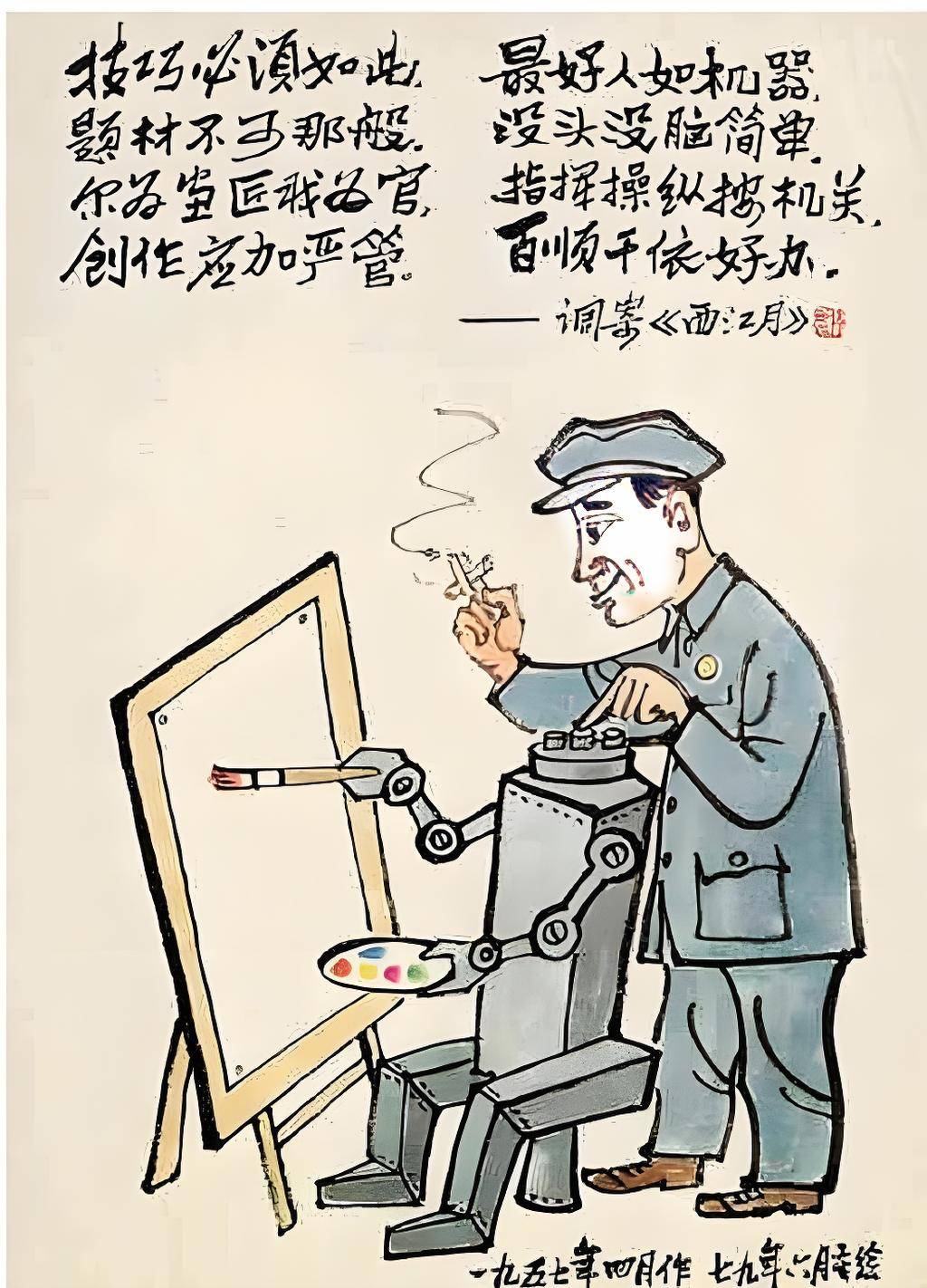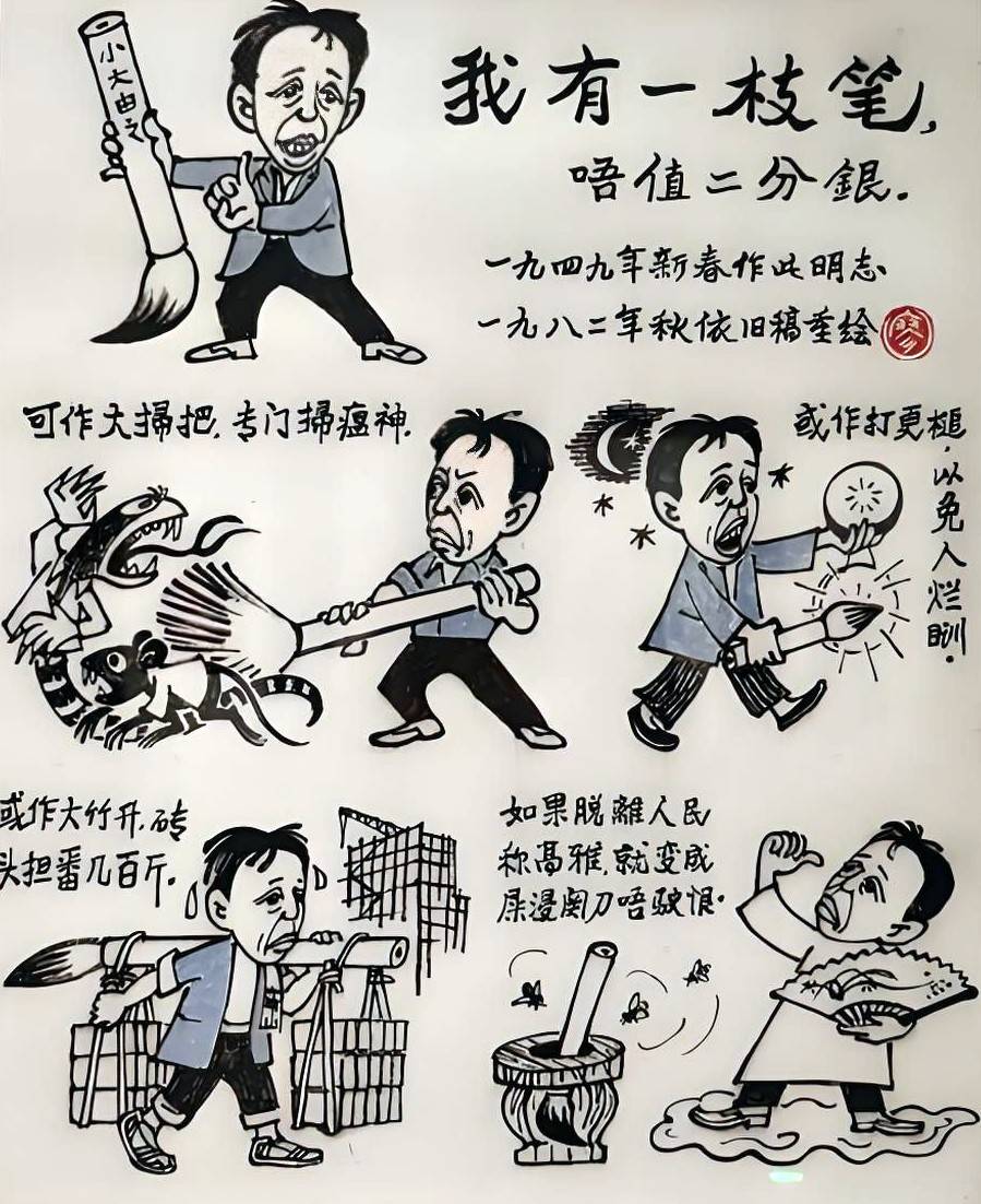 可好日子没过多久,1957年,他在北京《漫画月刊》发表《打油词画——赠教条主义诸公》,批评文艺界的极左现象,被党报以大篇幅公开点名批判。1958年,他被划为“右派”,到广州白云山劳动改造。此后的二十多年,他几乎不能画画了,一个人最好的年华,就这么过去了。可他没死,他活了下来,活到了“文革”结束。