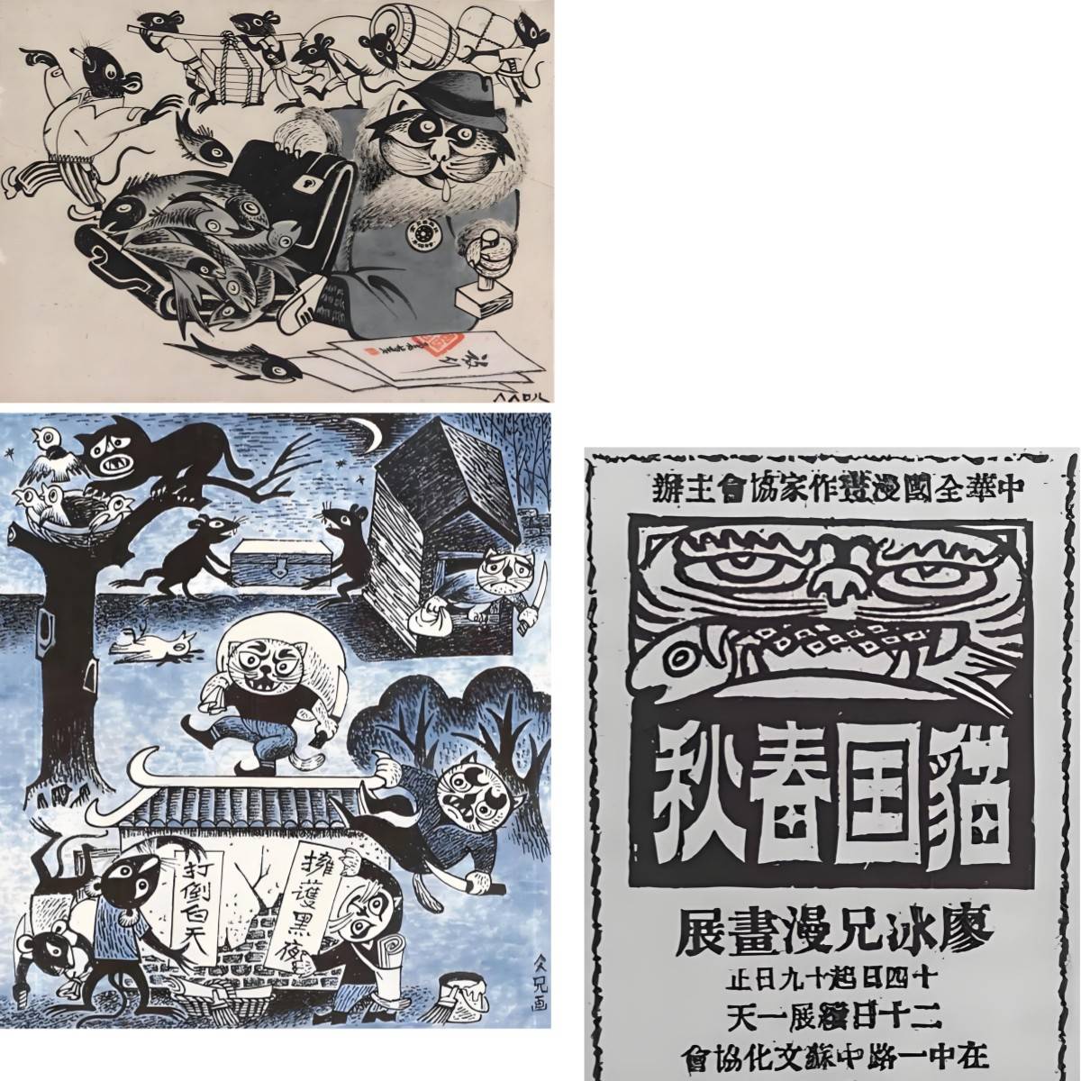 如今,他走了快二十年了。他的“冷巷斋”大概已经不在了,可他画的那些猫,那些老鼠,那些坏人,那些风景,还留在纸上,留在故土,留在我们的记忆里。